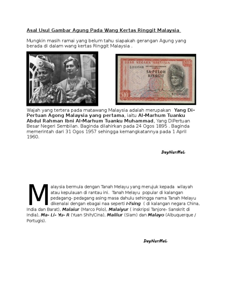 Asal Usul Gambar Agung Pada Duit Malaysia