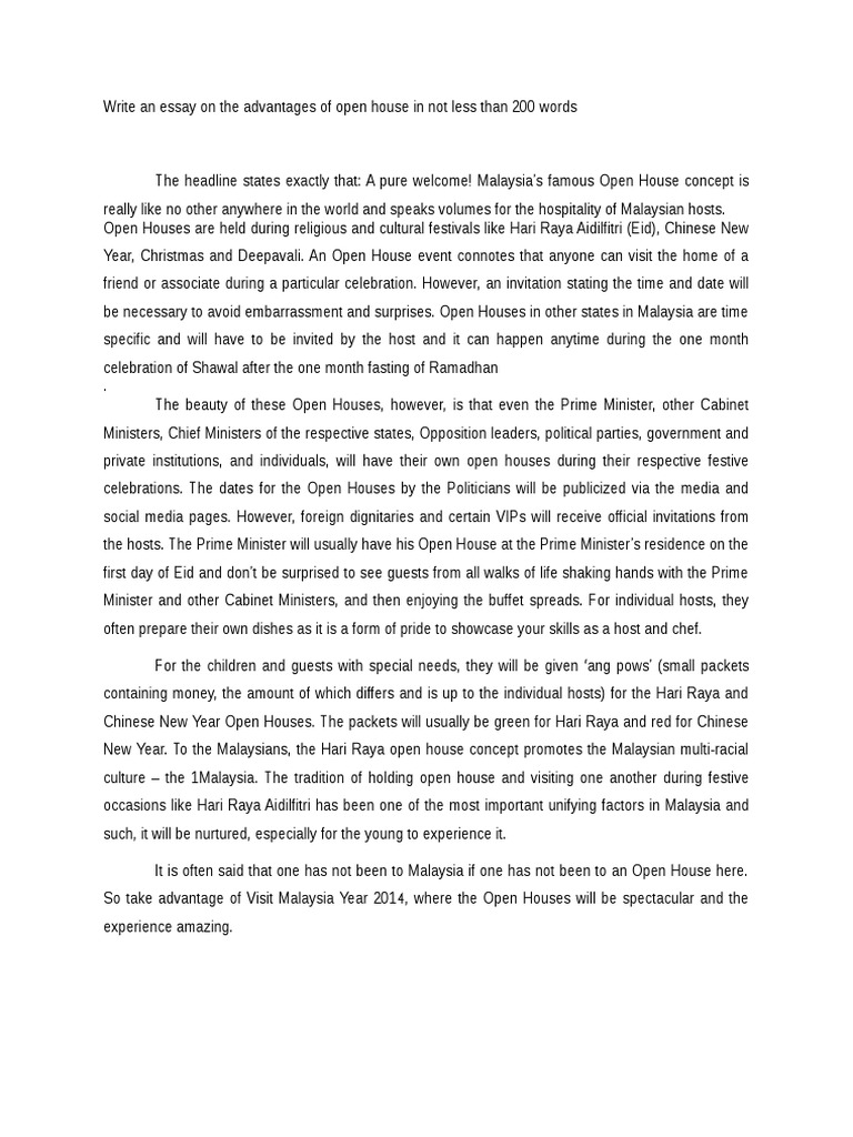 Open House Malaysia Essay Homework Example October 2020 Academic Service